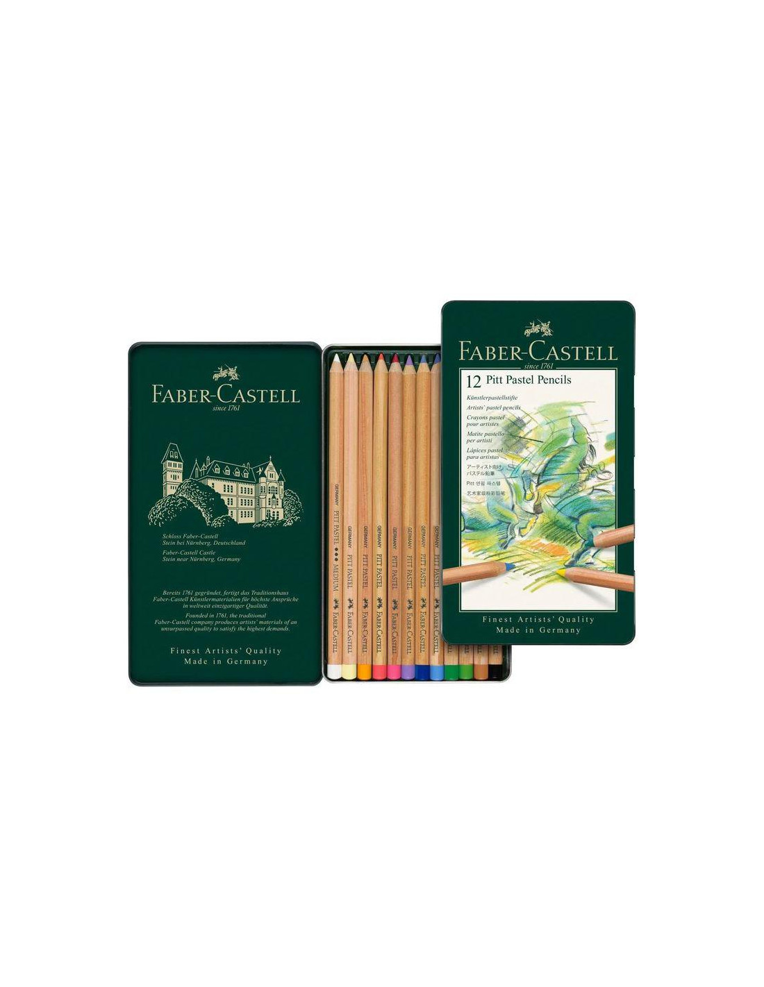 LAPIZ FABER CASTELL PITT PASTEL CAJA METALICA 12 COLORES MOD.112112 Los ecolápices pastel Pitt contienen un alto porcentaje de pigmentos y no incluyen ni aceites ni ceras. Su mina de 4,3 mm de grosor es perfecta para concretar detalles, se pueden difuminar para crear finas transiciones de color, siendo el complemento perfecto a las tizas pastel. Solo se requiere una mínima fijación para que el dibujo mantenga su intensidad de color.