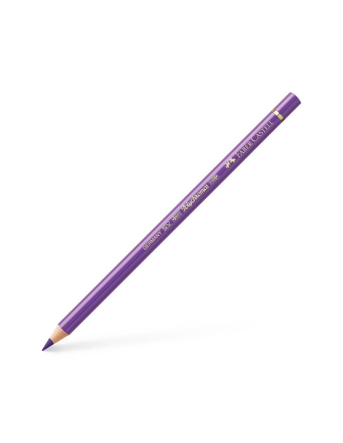 LAPIZ FABER CASTELL POLYCHROMO 9201 VIOLETA Nº138 Los ecolápices Polychromos son internacionalmente valorados por artistas profesionales y aficionados por su extraordinaria calidad. Sus pigmentos brillan por igual utilizados en composiciones libres o creativas interpretaciones de la realidad. •Pigmentos de alta calidad con resistencia a la acción de la luz y luminosidad de color insuperables •Trazo suave de colorido intenso •Resistente al agua y permanente •Mina de 3,8 mm de grosor •Gran resistencia a la rotura gracias a un encolado elástico entre mina y madera