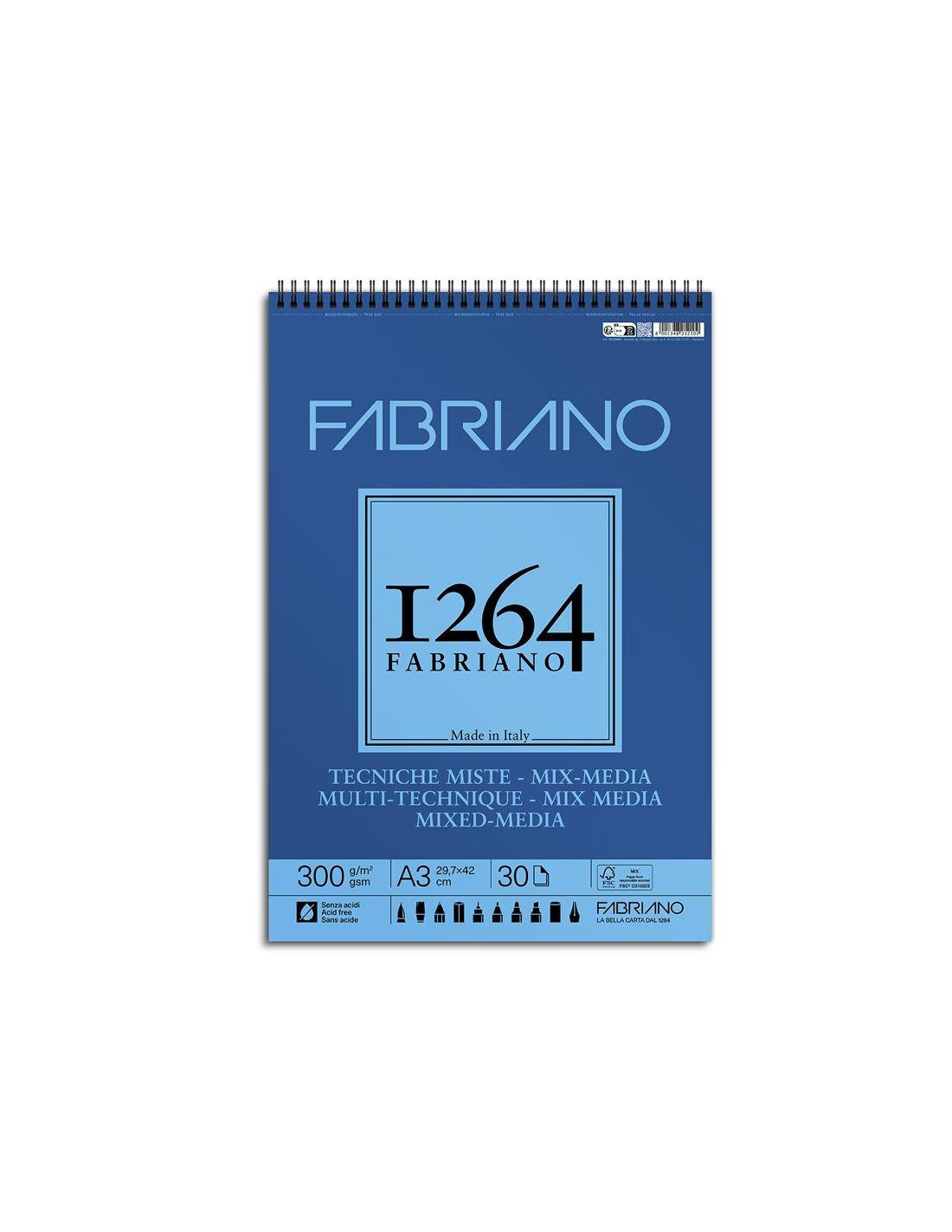 BLOC FABRIANO WATERCOLOUR 25% ALGODON ENCOLADO 24X32CM 300GR 12H GRANO FINO MOD.17312432