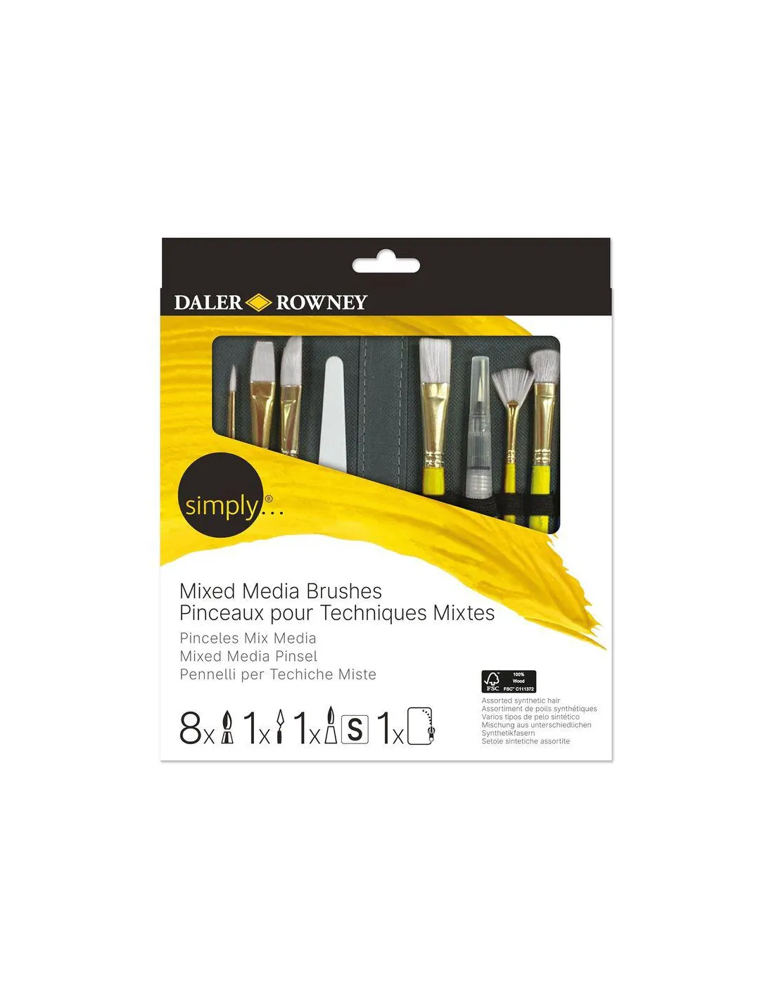 SET 10 PINCELES DALER ROWNEY SIMPLY ESTUCHE CREMALLERA MIX MEDIA MANCO CORTO