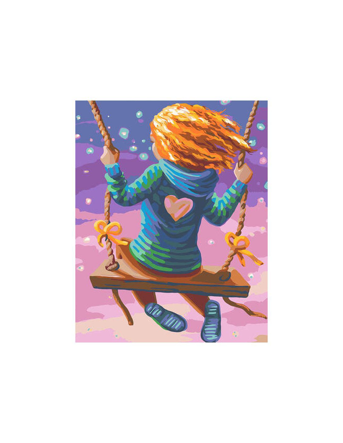 LIENZO ALEX BOG PINTAR POR NUMEROS MOD.SG-3833 NIÑA EN COLUMPIO  • 40x50 cm. • Bastidor de alta calidad. • 3 pinceles • Tubos de pintura acrílica. • Utillajes para colgar.
