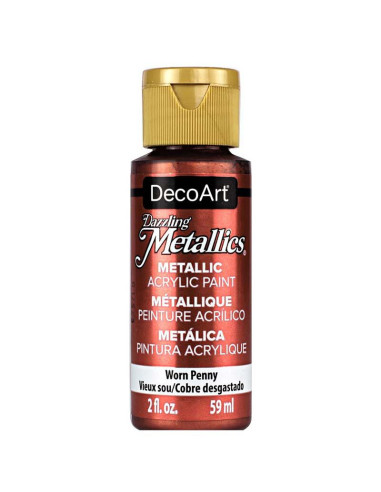 PINTURA ACRILICA AMERICANA 59ml METALIZADO MONEDA VIEJA Nº 287 Pintura acrílica a base de agua. Superficies aprobadas probadas por artistas: madera, paredes, lona, ??terracota, papel, espuma de poliestireno, cerámica sin esmaltar, metal y piedra. No aprobado para exteriores. Acabado: Mate. Cuerpo (Viscocidad): Medio. Opacidad: varía según el color. No se puede hornear para un acabado apto para lavavajillas. Tiempo promedio de secado al tacto: 20-30 minutos *puede variar con la temperatura, la humedad, etc. Tiempo de secado para curar por completo: 5-7 días *puede variar con la temperatura, la humedad, etc.