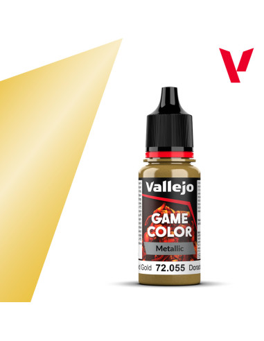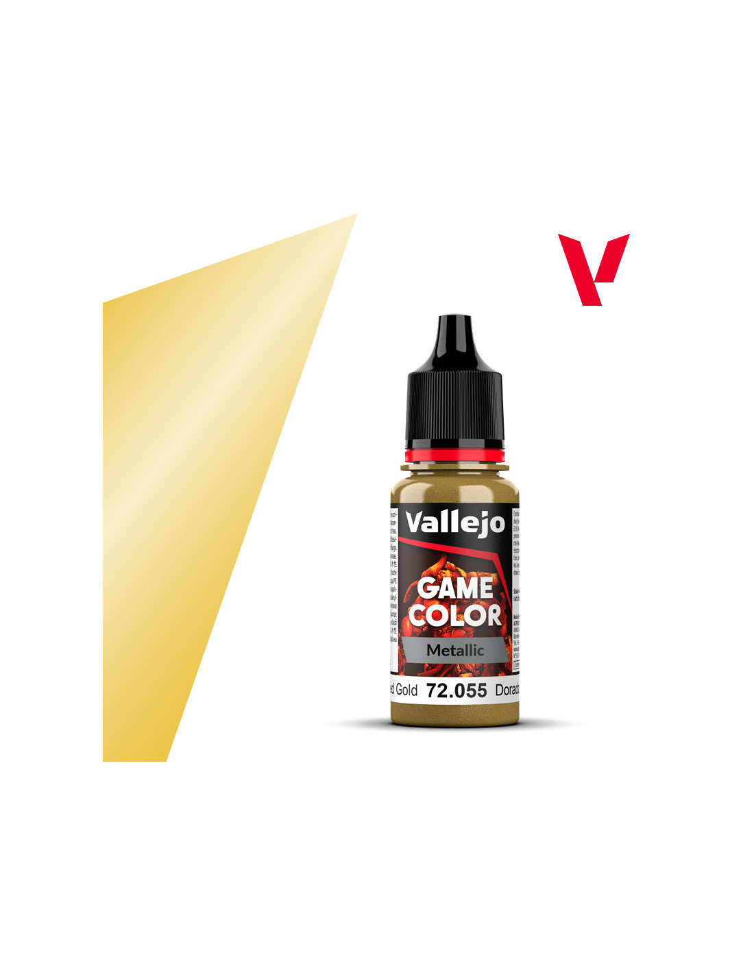 PINTURA VALLEJO GAME COLOR METAL 18 ml DORADO PULIDO La nueva formulación de los metalizados presenta una gran mejora en la aplicación, los colores son más fluidos y se extienden con mucha facilidad sobre la figura. El surtido de colores se ha diseñado en función del sistema de pintura para figuras BSL (Base, Sombra y Luz), basado en agrupaciones de tres colores, cromáticamente compatibles, que facilita a todos los aficionados una fácil elección de colores para pintar su miniatura con las luces y sombras adecuadas a cada color base. El pigmento metalizado empleado en la formulación presenta un diámetro de partícula ultrafino, lo cual realza las propiedades del color y ofrece una excelente adherencia y resistencia. Pueden mezclarse con el resto de colores y productos de la gama para lograr efectos metalizados de gran intensidad y realismo. • Modo de empleo: Los colores han sido formulados para su aplicación a pincel, pero pueden usarse también con aerógrafo.