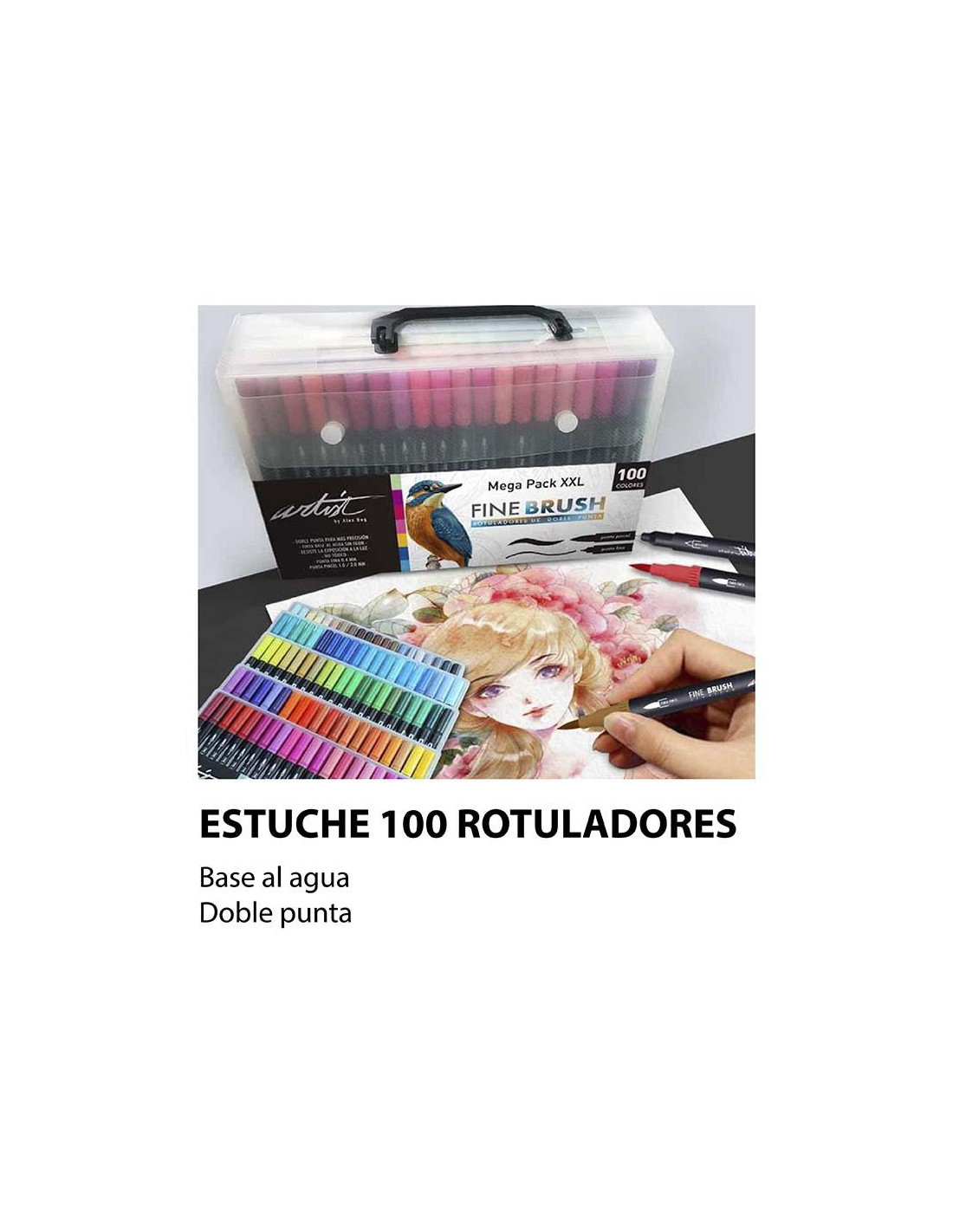 ROTULADOR ALEX BOG 2 PUNTAS FINA Y PINCEL MALETIN 72 COLORES