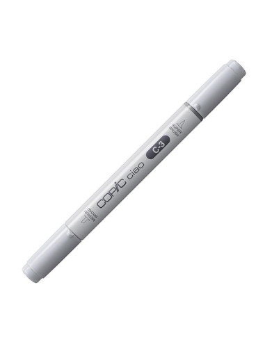 ROTULADOR COPIC CIAO COLOR C-3 COOL GRAY El Copic Ciao es un marcador gráfico versátil, diseñado especialmente para estudiantes y artistas principiantes que buscan experimentar y disfrutar del arte del dibujo. Con tintas de alcohol y colorantes de la más alta calidad, formuladas por expertos, este marcador ofrece un color intenso, uniforme y ultradifuminable. Cuenta con doble punta: una punta pincel flexible, perfecta para mezclar, sombrear y crear trazos expresivos, y una punta biselada que permite una amplia cobertura y variedad de marcas. Además, es recargable, lo que lo convierte en una opción sostenible y duradera.