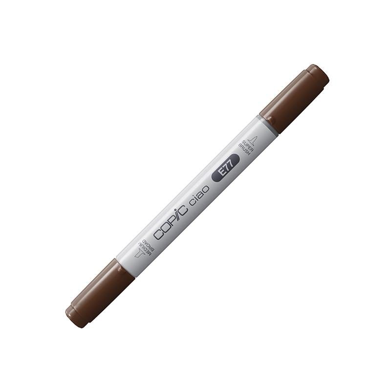 ROTULADOR COPIC CIAO COLOR E77 MAROON El Copic Ciao es un marcador gráfico versátil, diseñado especialmente para estudiantes y artistas principiantes que buscan experimentar y disfrutar del arte del dibujo. Con tintas de alcohol y colorantes de la más alta calidad, formuladas por expertos, este marcador ofrece un color intenso, uniforme y ultradifuminable. Cuenta con doble punta: una punta pincel flexible, perfecta para mezclar, sombrear y crear trazos expresivos, y una punta biselada que permite una amplia cobertura y variedad de marcas. Además, es recargable, lo que lo convierte en una opción sostenible y duradera.