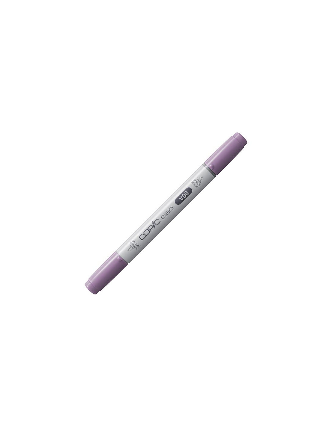 ROTULADOR COPIC CIAO COLOR V06 LAVENDER El Copic Ciao es un marcador gráfico versátil, diseñado especialmente para estudiantes y artistas principiantes que buscan experimentar y disfrutar del arte del dibujo. Con tintas de alcohol y colorantes de la más alta calidad, formuladas por expertos, este marcador ofrece un color intenso, uniforme y ultradifuminable. Cuenta con doble punta: una punta pincel flexible, perfecta para mezclar, sombrear y crear trazos expresivos, y una punta biselada que permite una amplia cobertura y variedad de marcas. Además, es recargable, lo que lo convierte en una opción sostenible y duradera.