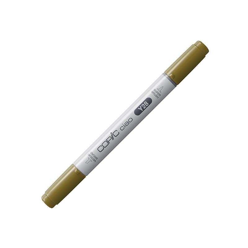 ROTULADOR COPIC CIAO COLOR Y28 LIONET GOLD El Copic Ciao es un marcador gráfico versátil, diseñado especialmente para estudiantes y artistas principiantes que buscan experimentar y disfrutar del arte del dibujo. Con tintas de alcohol y colorantes de la más alta calidad, formuladas por expertos, este marcador ofrece un color intenso, uniforme y ultradifuminable. Cuenta con doble punta: una punta pincel flexible, perfecta para mezclar, sombrear y crear trazos expresivos, y una punta biselada que permite una amplia cobertura y variedad de marcas. Además, es recargable, lo que lo convierte en una opción sostenible y duradera.
