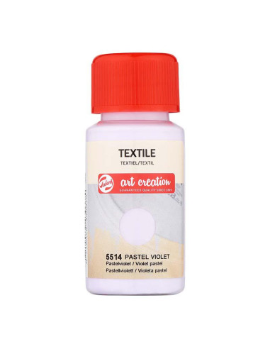 PINTURA TEXTIL ART CREATION BOTE 50ML VIOLETA PASTEL 5514 Recicla ropa, accesorios o decoraciones de interior como fundas de almohadas, cortinas y otros artículos textiles con la pintura Textil de Talens Art Creation. Textil es una pintura textil para telas claras (mínimo 50 % algodón. Modo de uso •Para obtener los mejores resultados, prelava el artículo de tela sin suavizante y deja que se seque por completo. •Aplica la pintura al tejido con una esponja o un pincel suave y deja que se seque durante 30 minutos. •Fija la pintura usando una plancha (a temperatura para algodón) con papel protector (como papel encerado) entre la tela y la plancha. •Después del ajuste de calor, el artículo se puede lavar hasta 40 °C y es adecuado para la secadora. Deja que el artículo se seque completamente, ¡y disfruta de tu nuevo diseño personalizado!