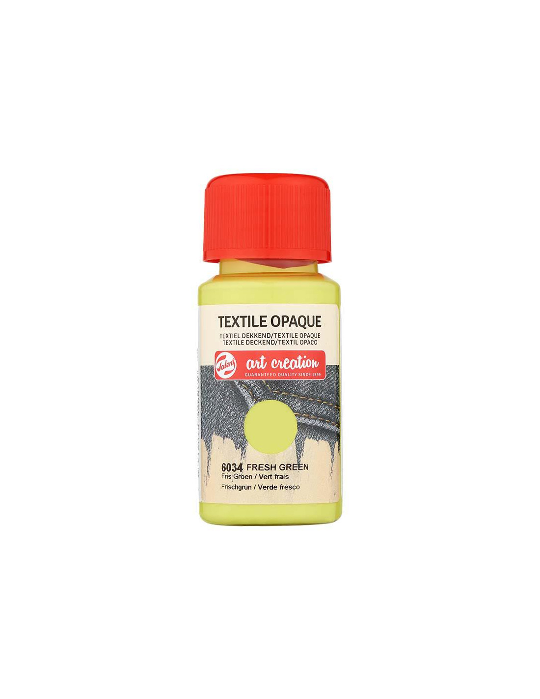 PINTURA TEXTIL ART CREATION BOTE 50ML OPACO VERDE FRESCO 6034 Recicla ropa, accesorios o decoraciones de interior como fundas de almohadas, cortinas y otros artículos textiles con la pintura Textil de Talens Art Creation. Textil Opaco es una pintura especialmente desarrollada para tejidos oscuros (mínimo 50 % algodón). Modo de uso •Para obtener los mejores resultados, prelava el artículo de tela sin suavizante y deja que se seque por completo. •Aplica la pintura al tejido con una esponja o un pincel suave y deja que se seque durante 30 minutos. •Fija la pintura usando una plancha (a temperatura para algodón) con papel protector (como papel encerado) entre la tela y la plancha. •Después del ajuste de calor, el artículo se puede lavar hasta 40 °C y es adecuado para la secadora. Deja que el artículo se seque completamente, ¡y disfruta de tu nuevo diseño personalizado!